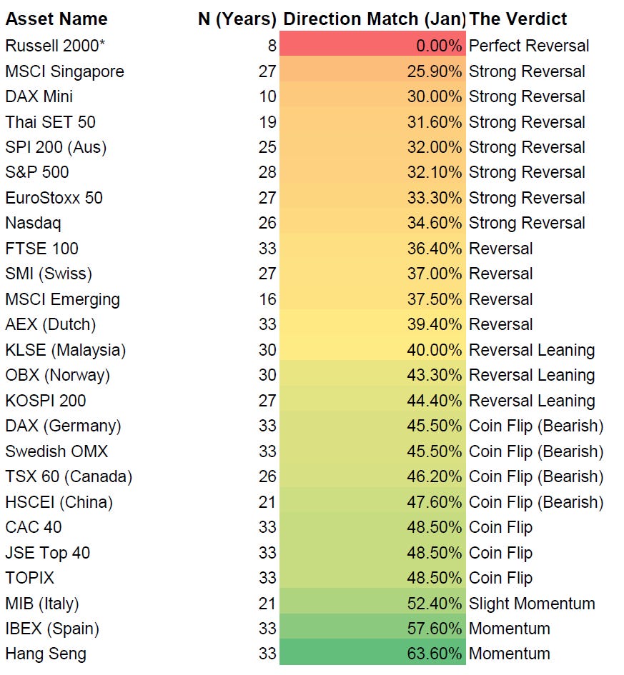 Only a handful of markets (Spain, Italy, Hong Kong) buck the trend. For the rest of the world, especially the US, UK, and Asia-Pacific, January is predominantly a month of unwinding the December party.